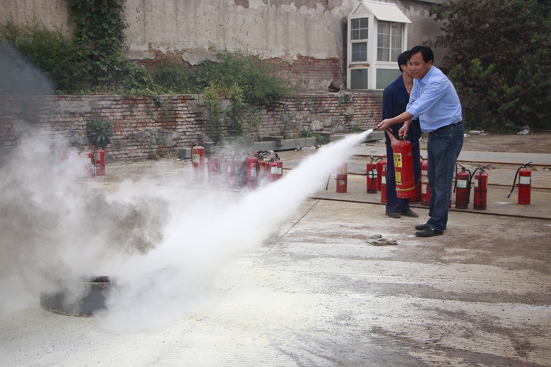 09月24日上午九点,所有参与演练人员在预定地点集合,总指挥亓总再次重申重视消防安全的重要性与必要性,由王元军主任为员工进行了消防安全知识培训,并讲解手提式灭火器的正确使用方法。