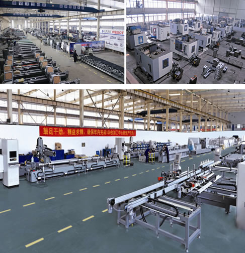 性能特点:全套施耐德数控系统;国内首创的高效四头组角生产线设备,可实现窗体的自动输入、定位、组角和自动输出;创新的机头结构设计,确保组角精度。