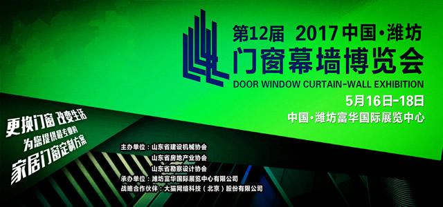 2017年5月16日,由山东省建设机械协会、山东省房地产业协会、山东省勘察设计协会携手主办的第12届中国·潍坊门窗幕墙博览会在潍坊富华国际展览中心盛大开幕!
