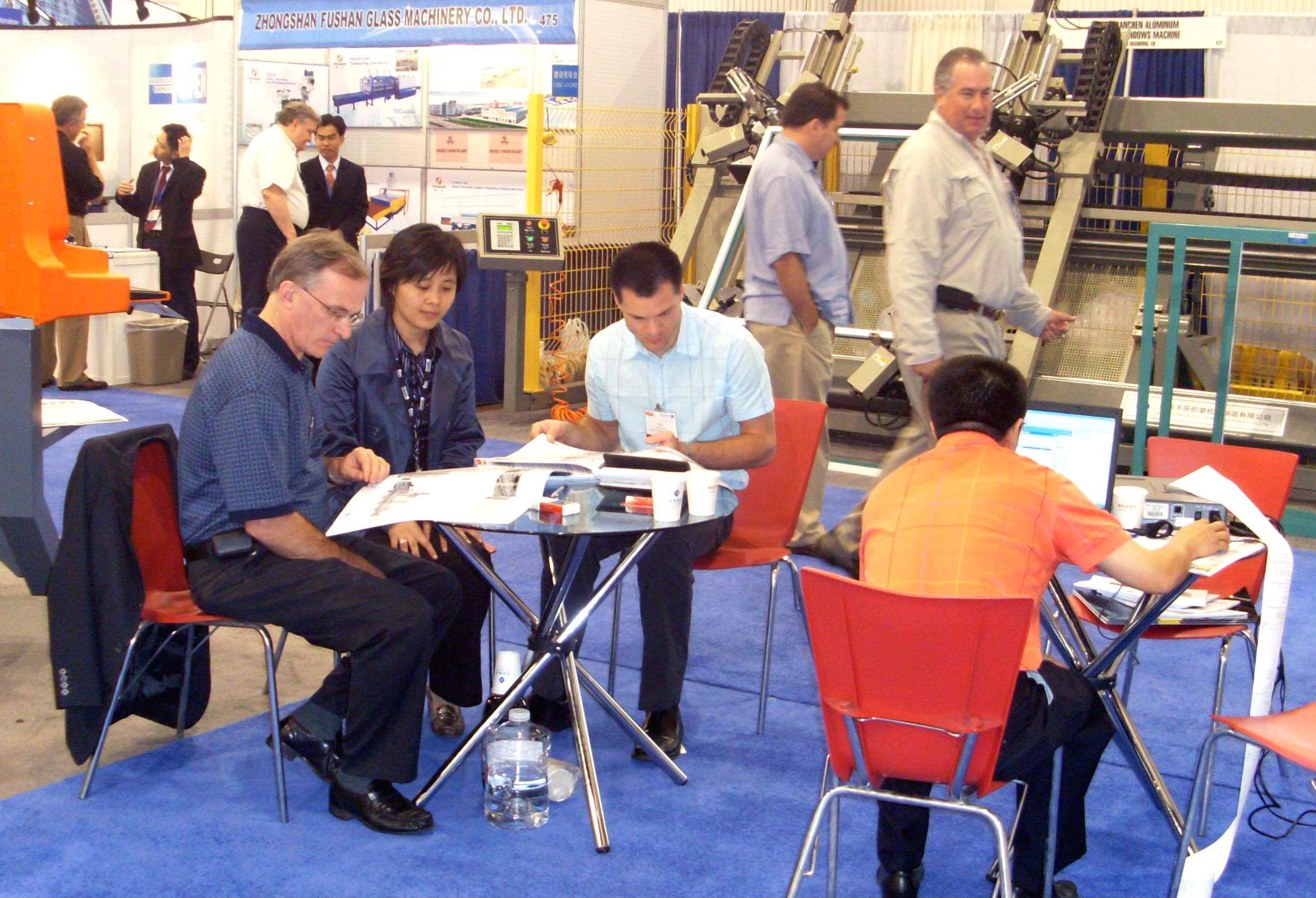 ??? 北京时间10月5日,GLASSBUILDAMERICA(美国国际玻璃门窗技术展)在拉斯维加斯拉开帷幕。此为世界三大门窗幕墙展会之一,定期在亚特兰大和拉斯维加斯交替举办。 这是天辰铝机公司第二次参加此会,本次携新高速四轴数控加工中心、数控四头组角机等设备参展,受到各国客商青睐和好评,参展设备在展期成功售出,并接收可观订单。